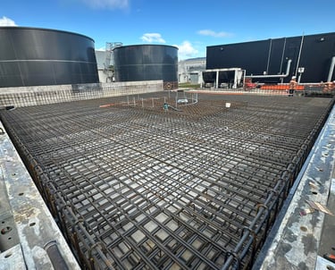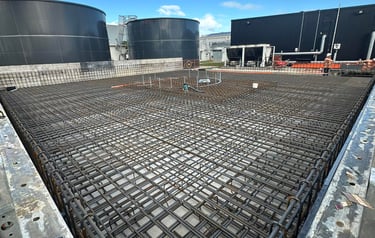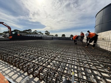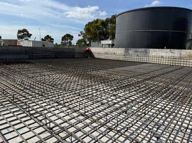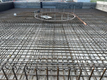 Large-scale reinforcement installation for water storage tank foundations, ensuring structural integrity, accuracy, and efficient delivery.