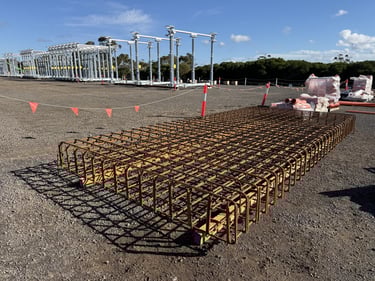 Reinforcement installation for transformer bases, structural slabs, and pits, executed with precision and consistent site performance.